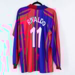 1997-98 Barcelona Home Long Sleeve Shirt #11 RIVALDO Champions League Kappa (Size XL)