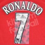 2002-07 Manchester United Home Name Number Set #7 RONALDO Premier League Repro