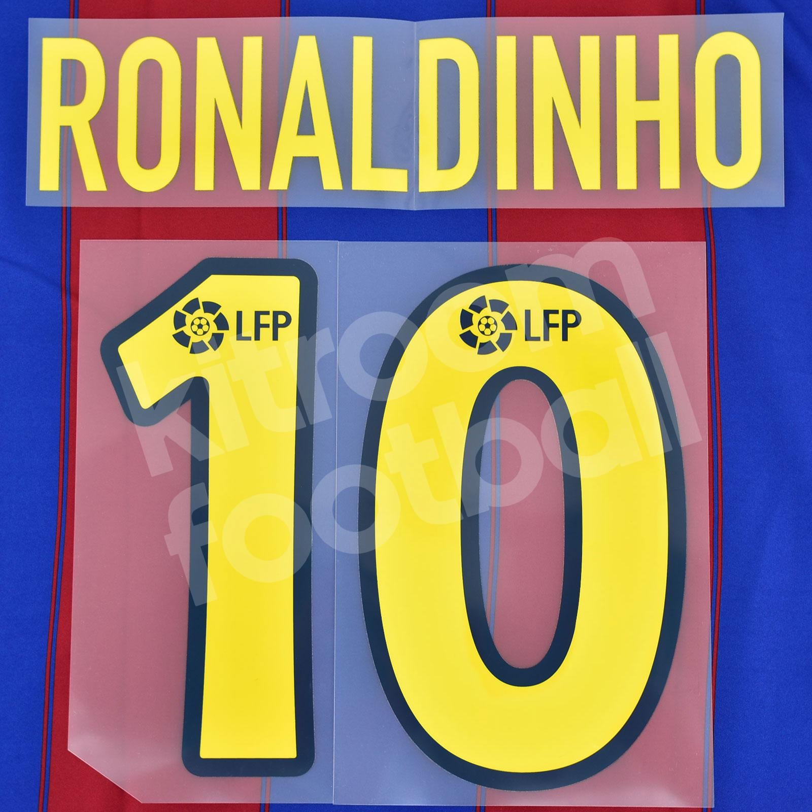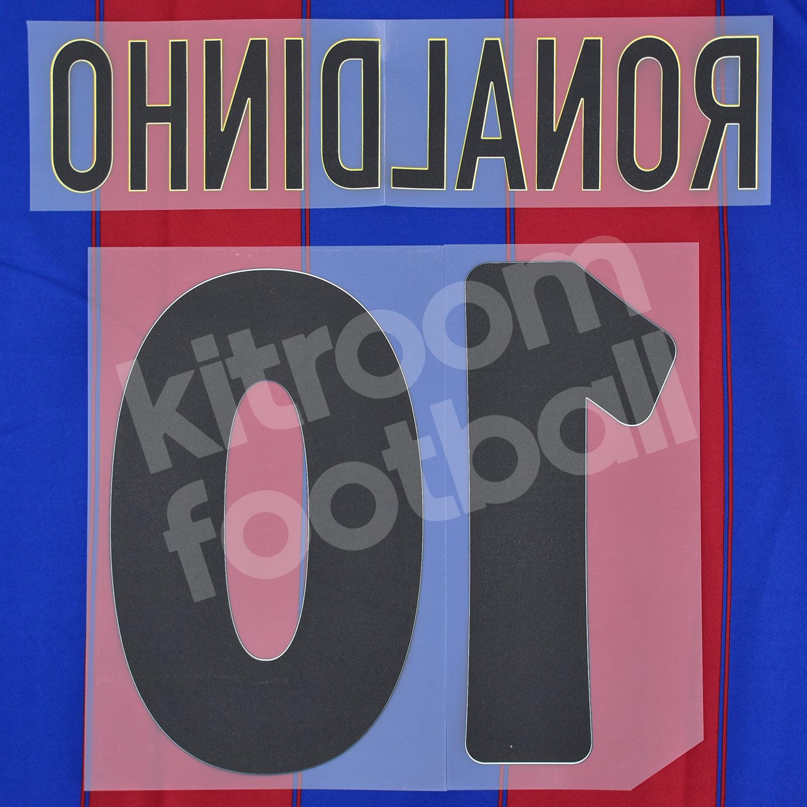 2003-04 Barcelona Home LFP Name Number Set #10 RONALDINHO Repro v2
