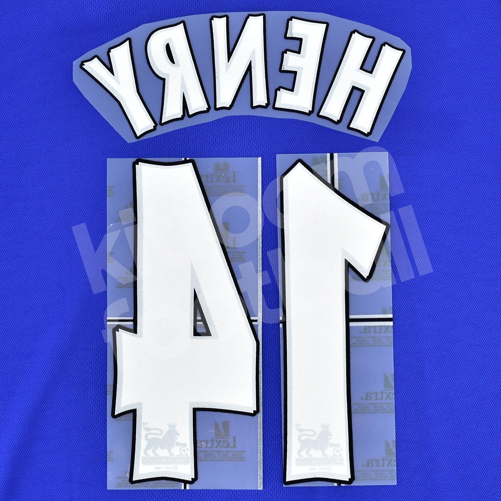 2004-05 Arsenal Away Name Number Set #14 HENRY Flock Lextra REpro