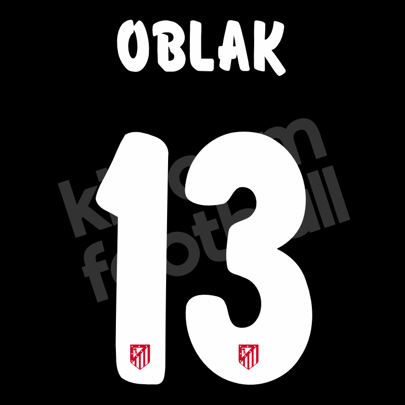2015-16 Atletico Madrid Goalkeeper Name Number Set #13 OBLAK White Repro