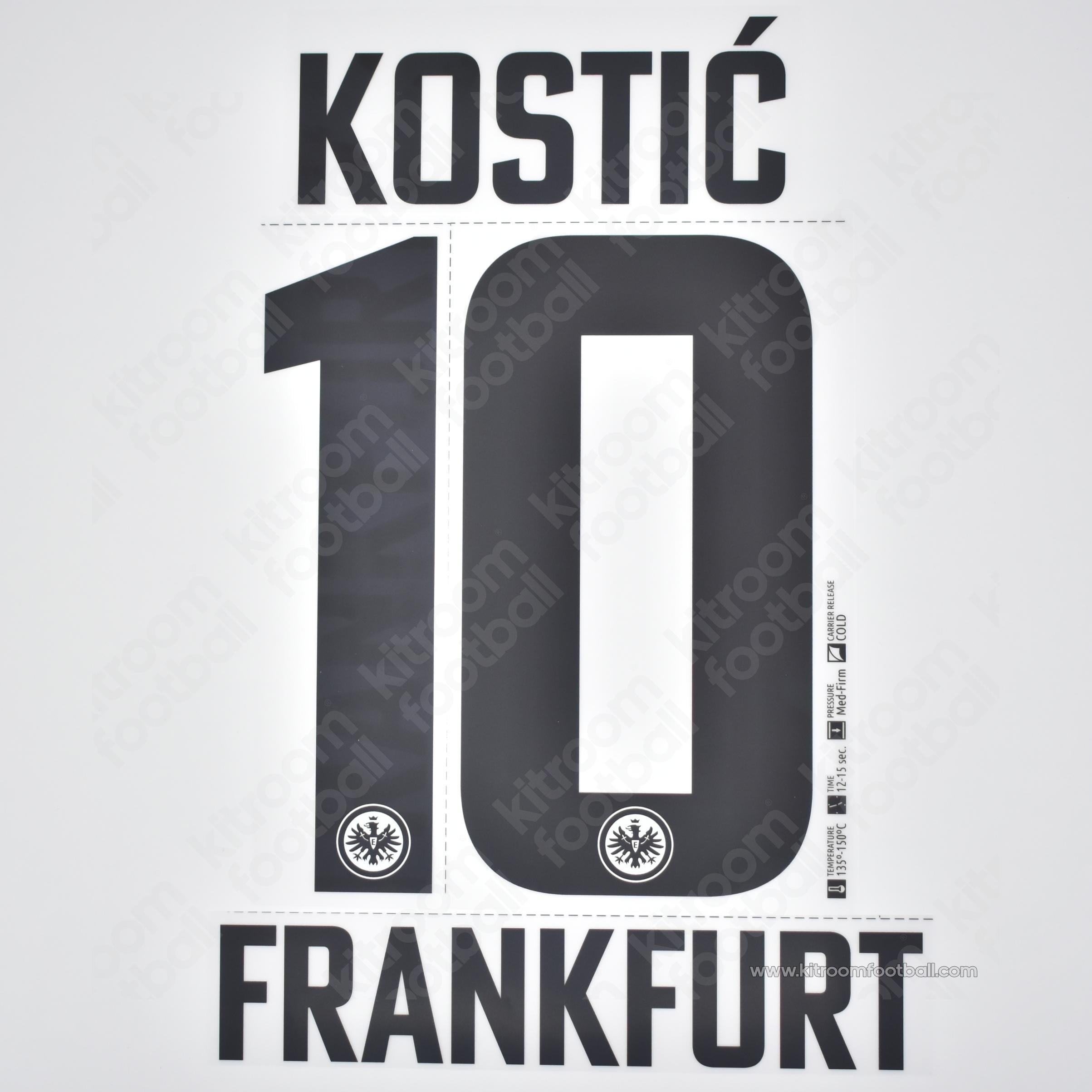 2021-22 Eintracht Frankfurt 3rd Kit Name Set & Number #10 KOSTIC (Repro)