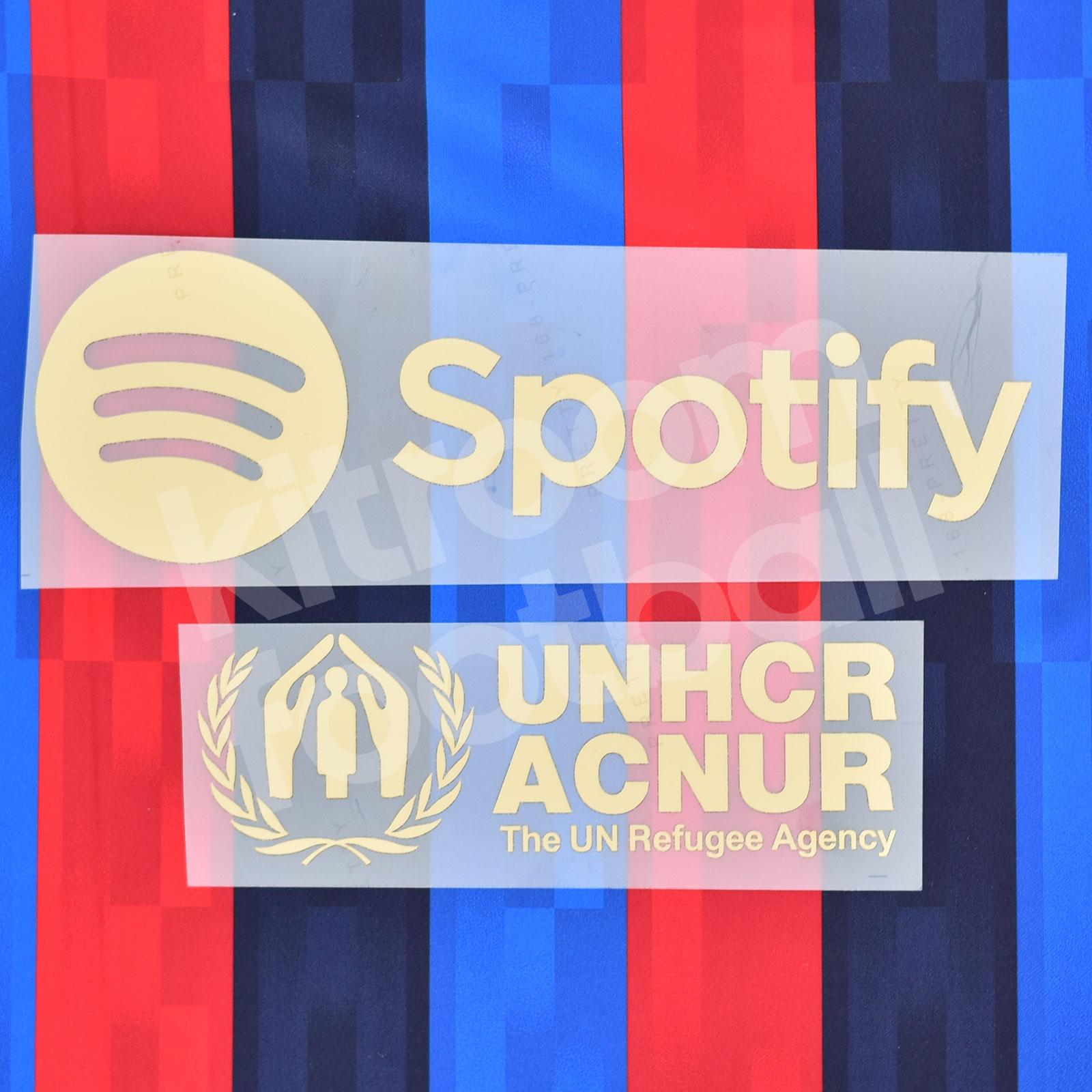 2022-23 Barcelona Sponsor Patch Spotify UNHCR ACNUR Home Repro