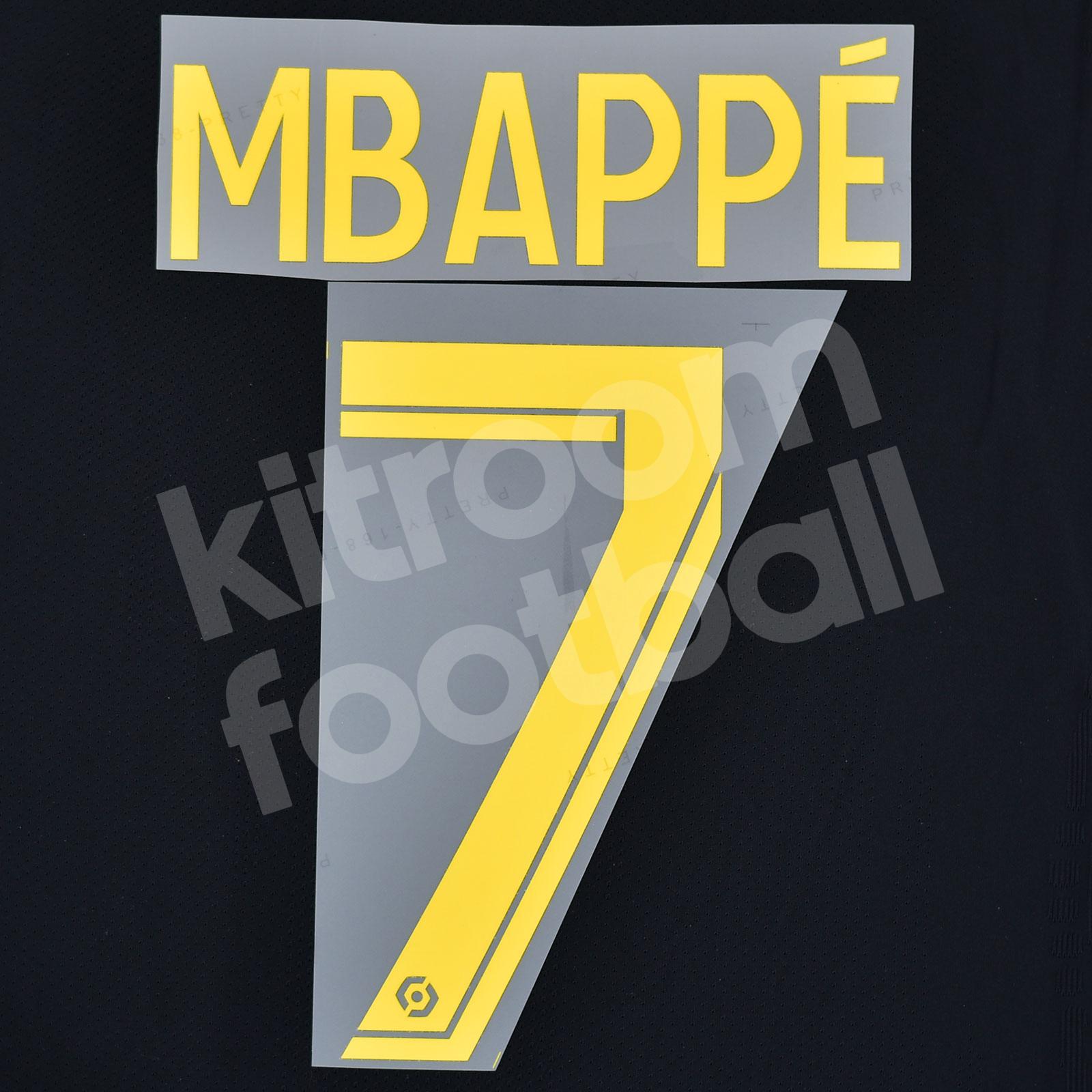 2022-23 PSG Paris Saint Germain Fourth Name Number Set #7 MBAPPE Ligue One Repro