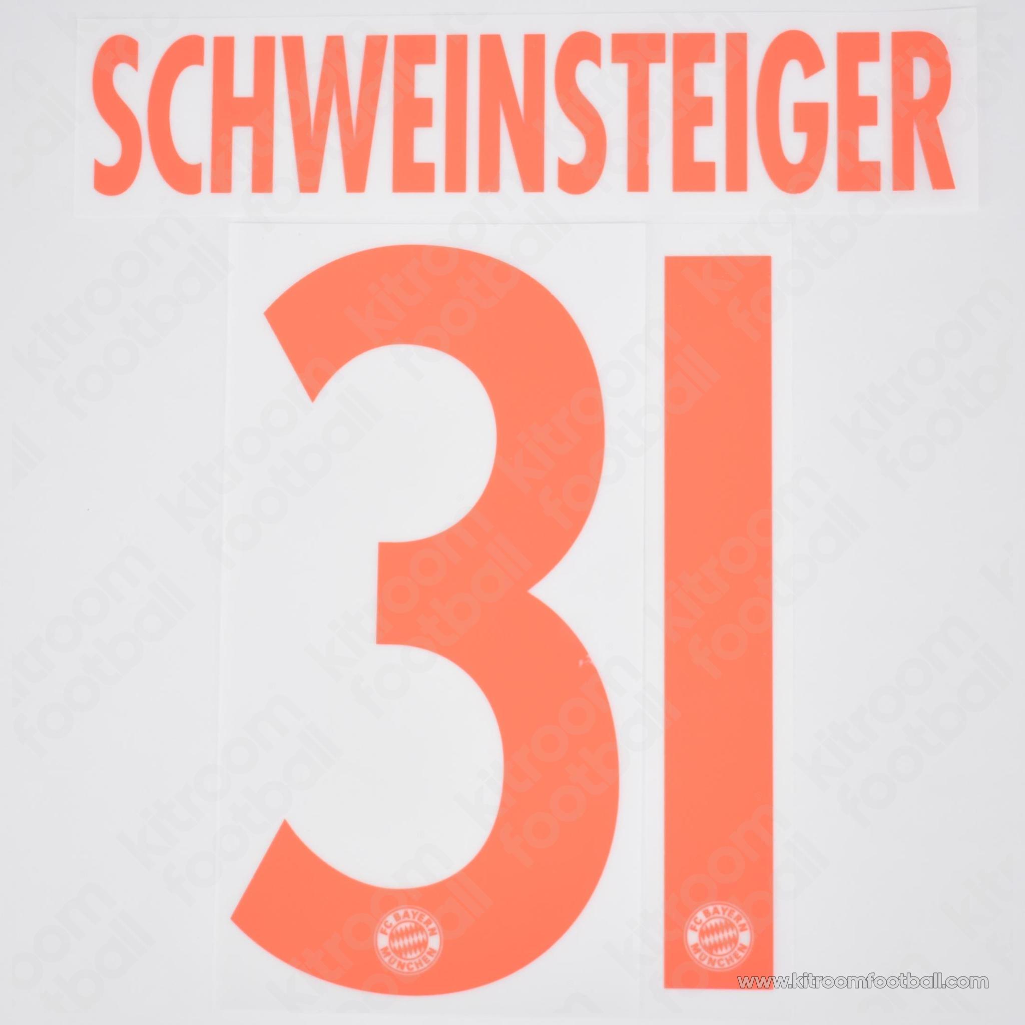 Official Reissue 2011-13 Bayern Munich Away Name Set #31 SCHWEINSTEIGER (DekoGraphics)