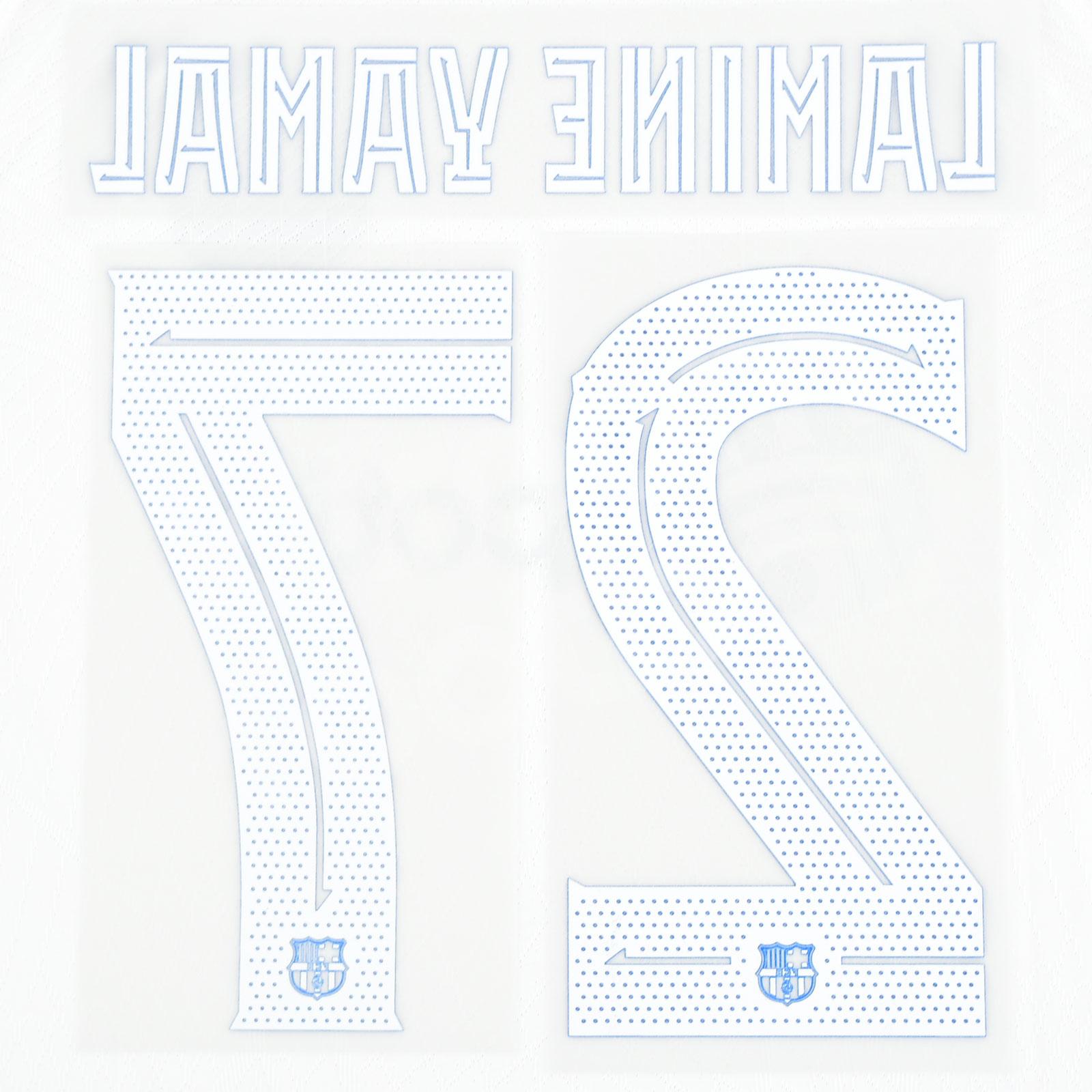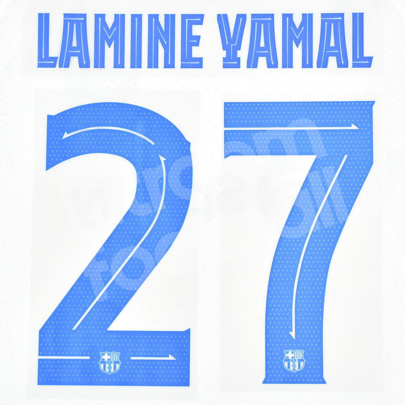 Original 2023-24 Fc Barcelona Away Name Number Set #27 LAMINE YAMAL UEFA Champions League TPT