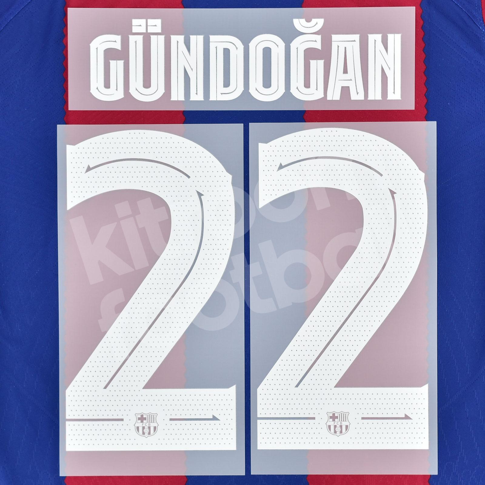 Original 2023-24 Fc Barcelona Home Name Number Set #22 GÜNDOGAN Champions League