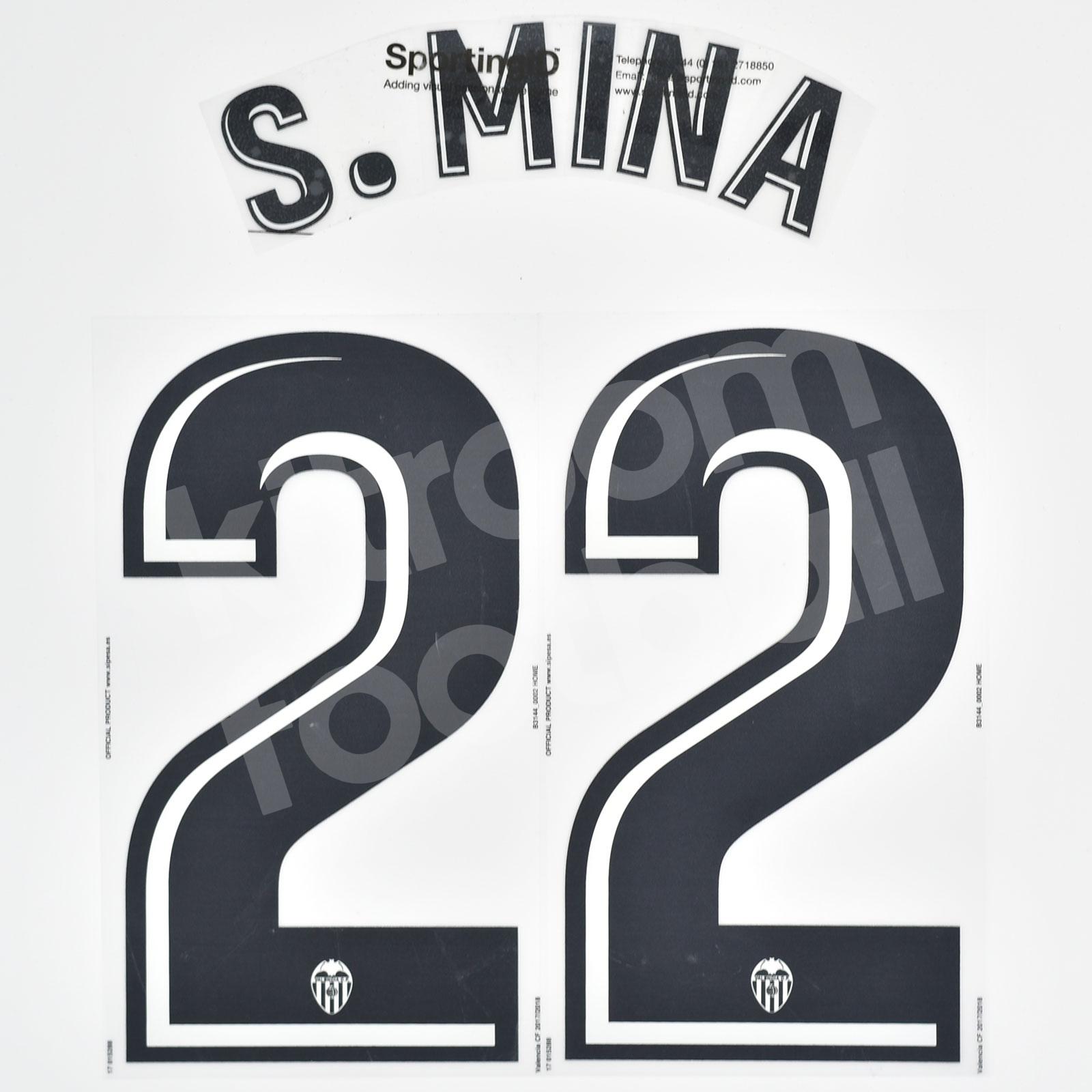 Original Player Issue 2017-18 Valencia CF Home Name Number Set #22 S. MINA